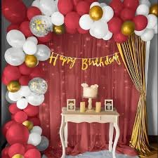 Birthday balloon decoration set price in Pakistan makes it a perfect choice for home birthday parties. This happy birthday balloon decoration includes colorful balloons, backdrop curtain and banner for beautiful party setup.